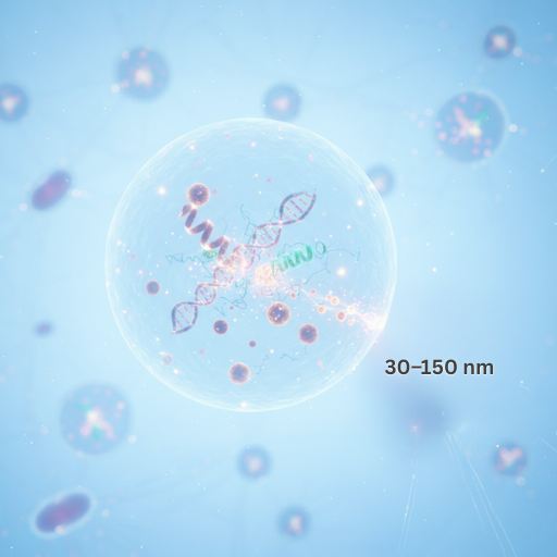 Exosomes are nanoscale extracellular vesicles released by cells. They carry molecular cargo such as proteins, RNA, and microRNAs (miRNAs). Acting as biological information parcels, exosomes can be taken up by recipient cells, where their contents are interpreted to modulate cellular behavior and gene expression.